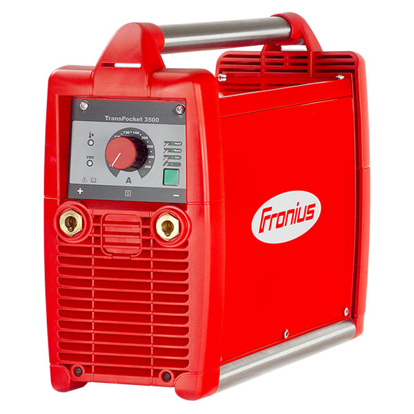 The TransPocket 3500 is a completely digitally-controlled MMA power source with resonant intelligence. The ideal characteristic ensures a constantly stable arc, even with mains leads up to 100 metres long. Stability is also guaranteed with fluctuating mains voltages (340 to 506 V) and during generator-powered operation. The TransPocket 3500 welds all electrode types up to 5 mm, including the vertical-down welding of cellulose electrodes. It is extremely robust yet also small, light and portable.